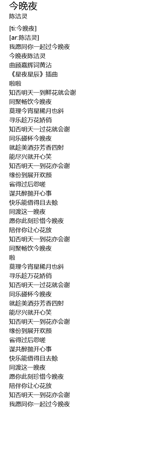 | [00:02.270] | 今晚夜陈洁灵 |