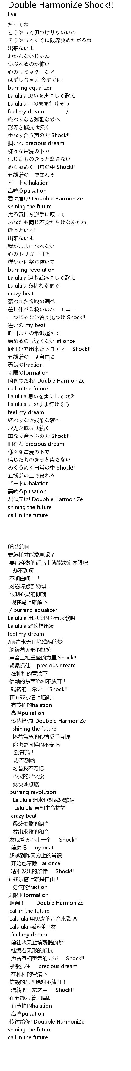 | [01:20.450] | 声音互相重叠的力量 Shock!! |
