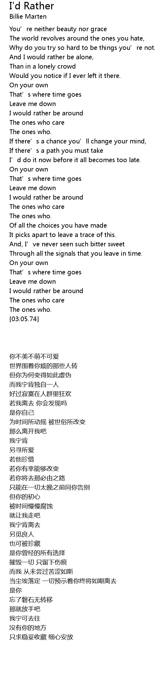 | 歌曲 | I'd Rather |