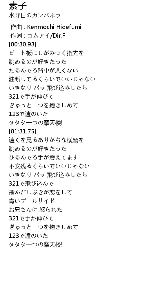 | [00:00.00] | 作曲 : Kenmochi Hidefumi |