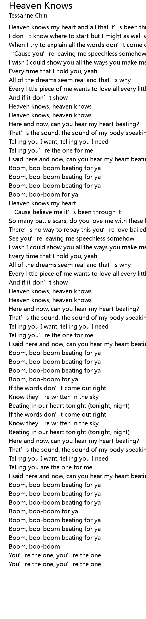 | Heaven knows my heart | |