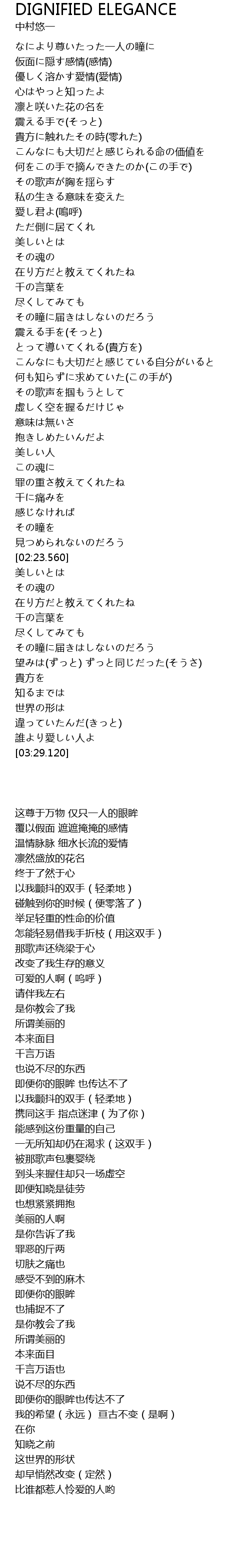 | 歌曲 | DIGNIFIED ELEGANCE |