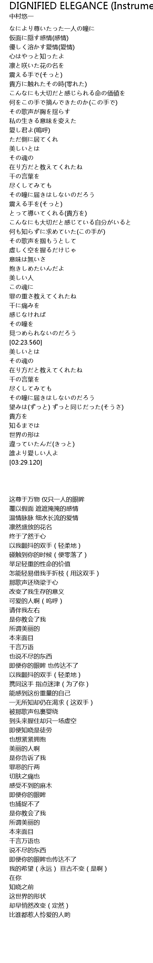| 歌曲 | DIGNIFIED ELEGANCE (Instrumental) |