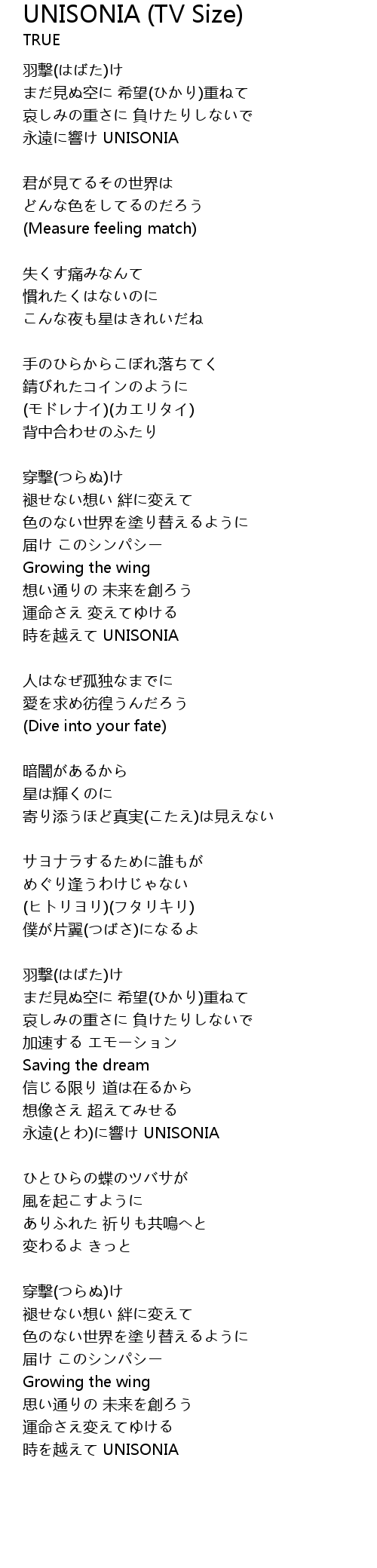 | 歌曲 | UNISONIA (TV Size) |