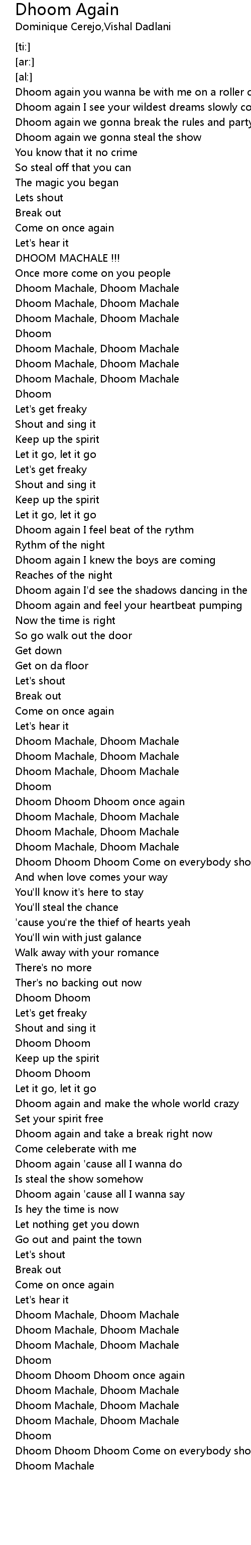 Dhoom Dhoom Dhoom Come on everybody shout |