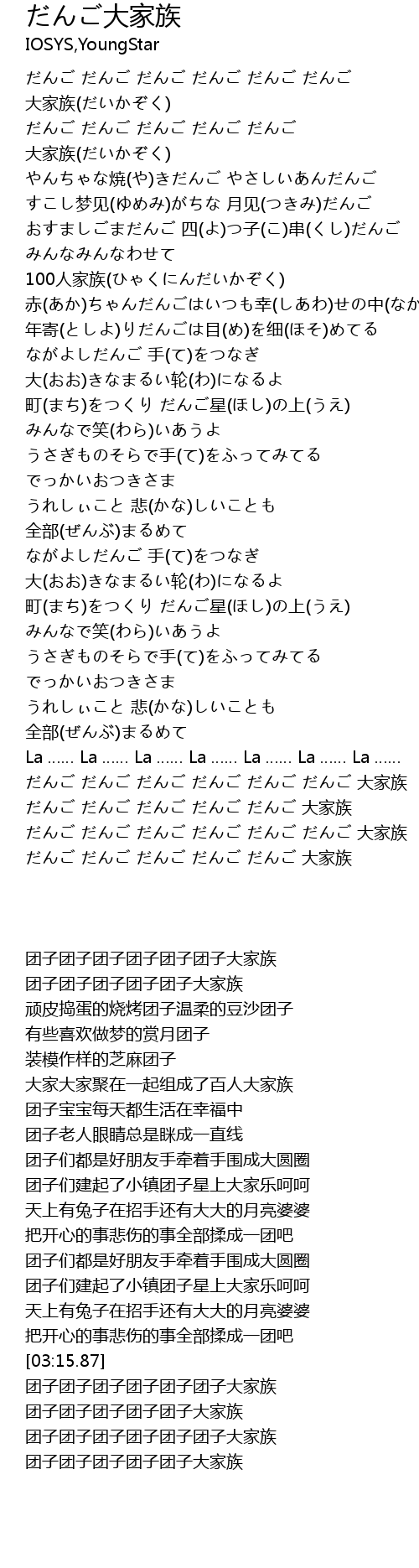| [00:00.30] | だんご だんご だんご だんご だんご だんご 大家族(だいかぞく) |
