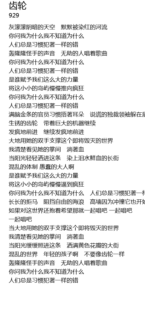 | [01:45] | 生锈的齿轮 带着巨大的机器继续 |