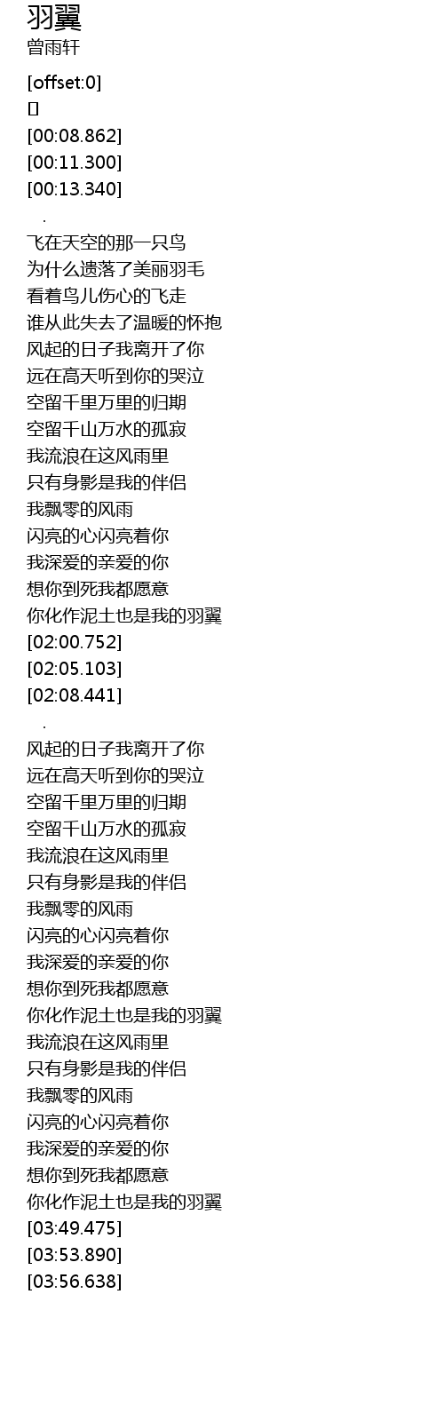 | [00:39.453] | 为什么遗落了美丽羽毛 |
