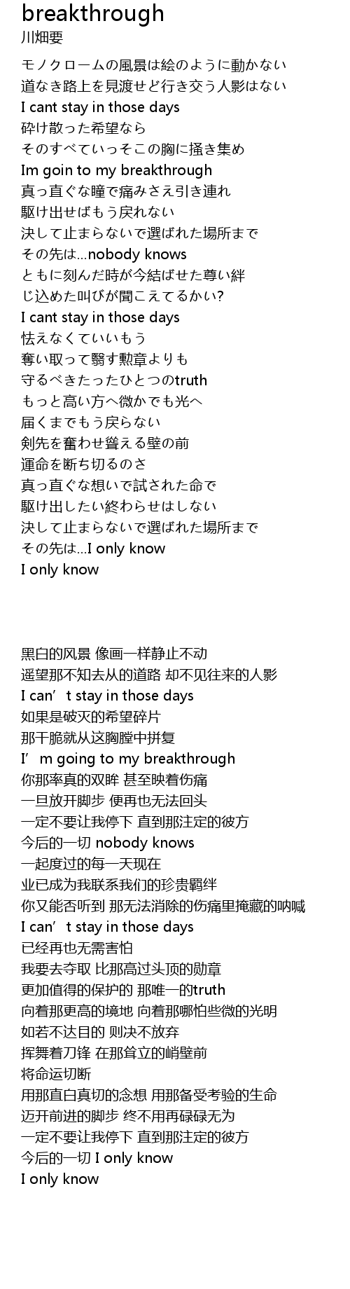 | [02:30.852] | 剣先を奮わせ聳える壁の前 |