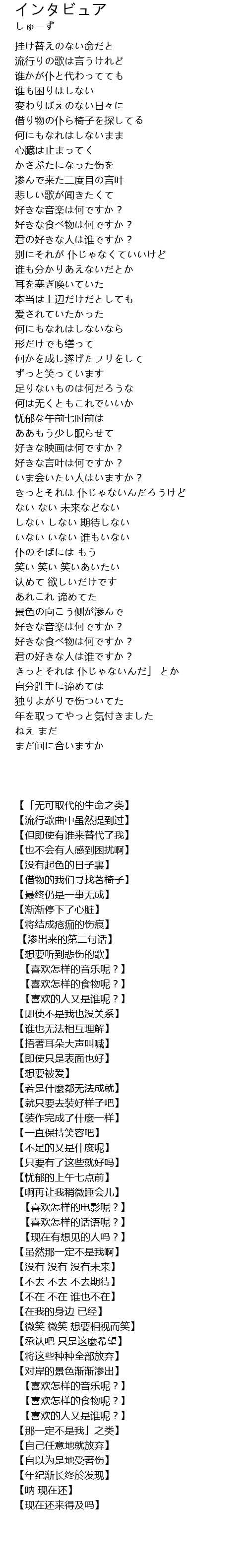 | [02:18.23] | 好きな言叶は何ですか? |