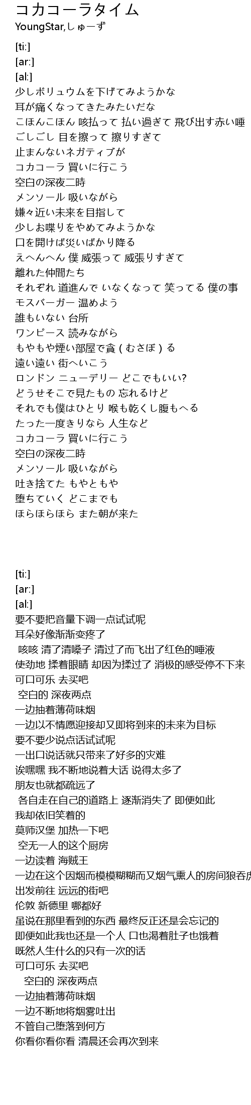 | [01:05.08] | コカコーラ 買いに行こう |