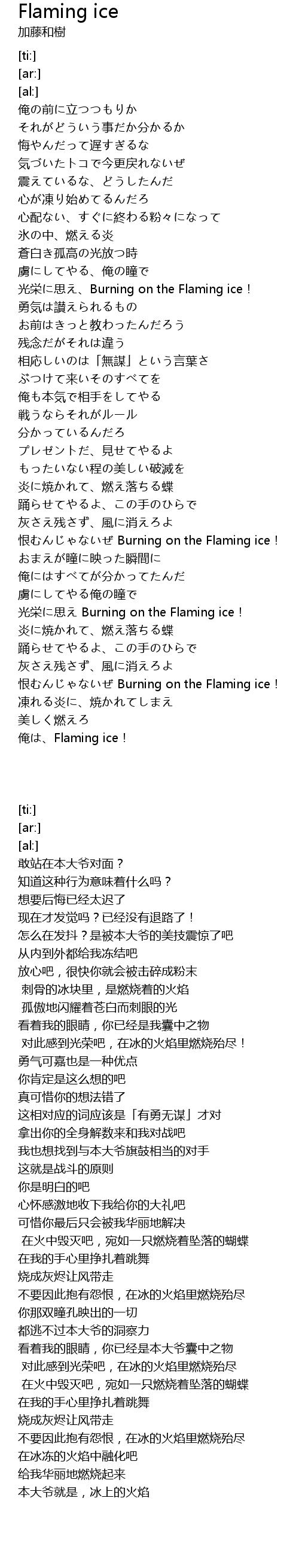 | [03:45.46] | 俺は、Flaming ice! |