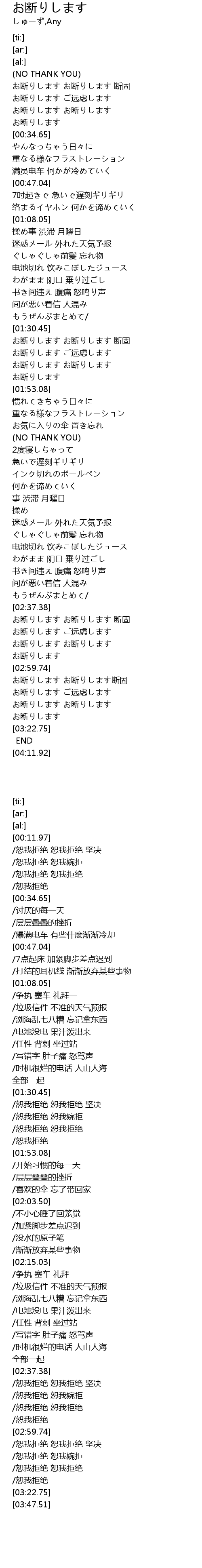 | [03:00.44] | お断りします お断りします断固 |