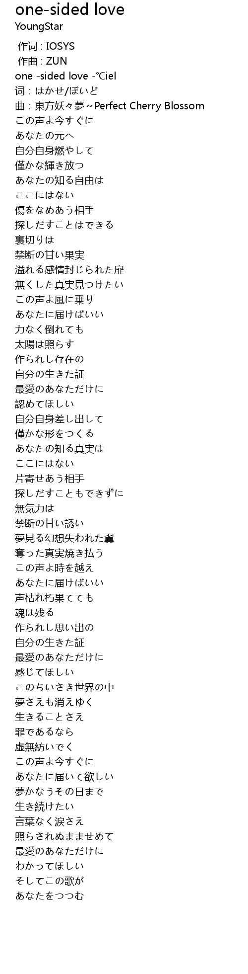 | [00:00.800] | 曲:東方妖々夢~Perfect Cherry Blossom |