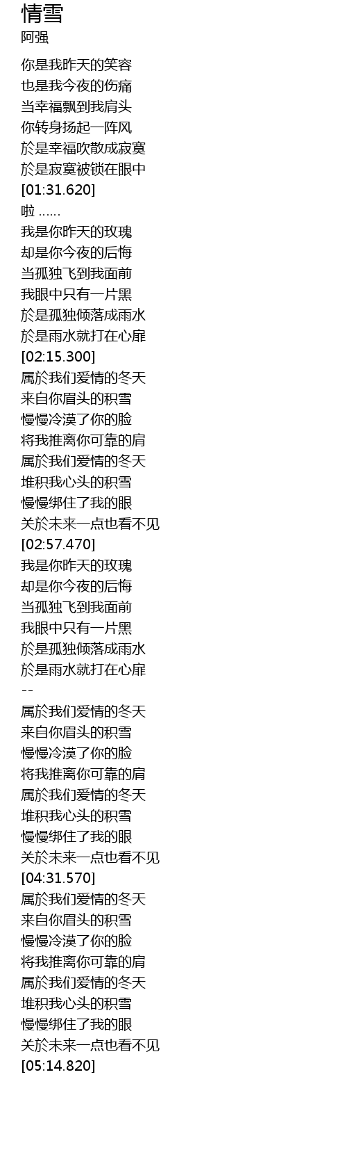 | [04:58.150] | 堆积我心头的积雪 |