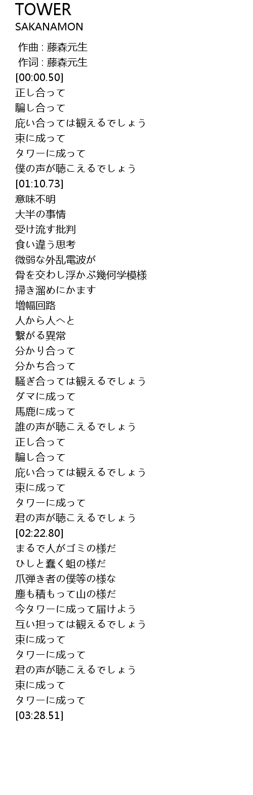 | [03:17.00] | タワーに成って |