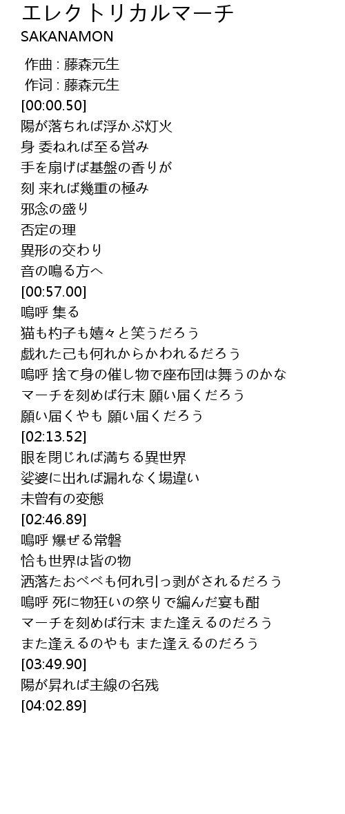 | [00:00.00] | 作曲 : 藤森元生 |