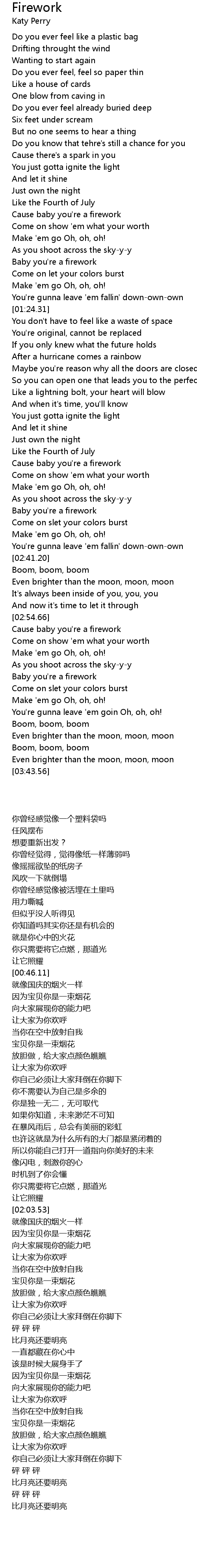 Cause baby you're a firework |
