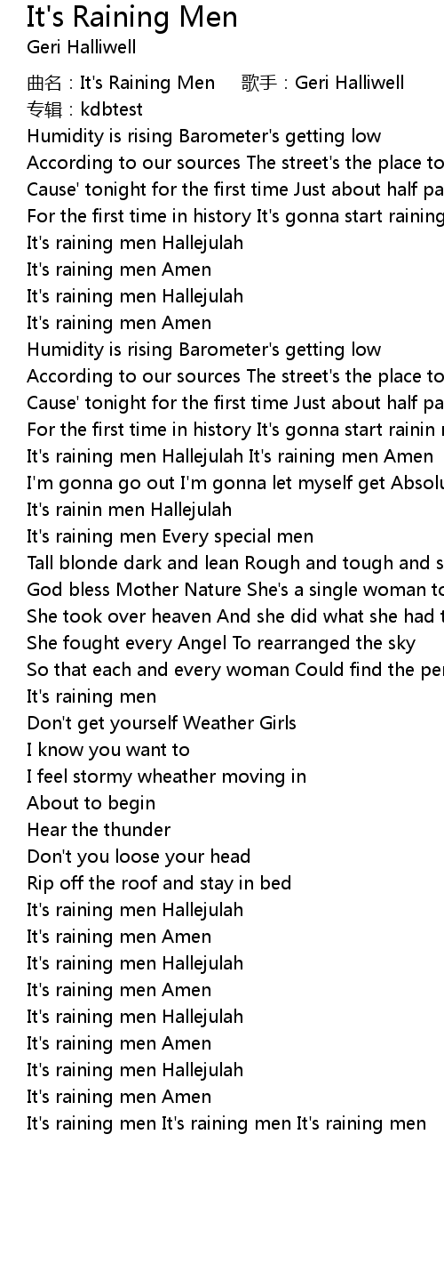 | [00:-1.00] | qū míng: It' s Raining Men gē shǒu: Geri Halliwell zhuān jí: kdbtest |