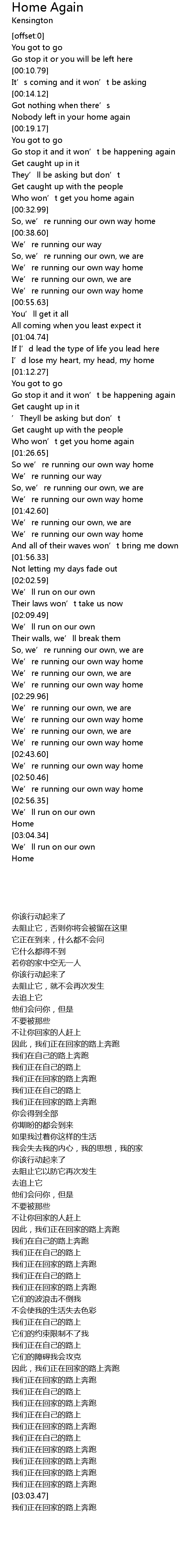 | [03:01.35] | 我们正在回家的路上奔跑 |