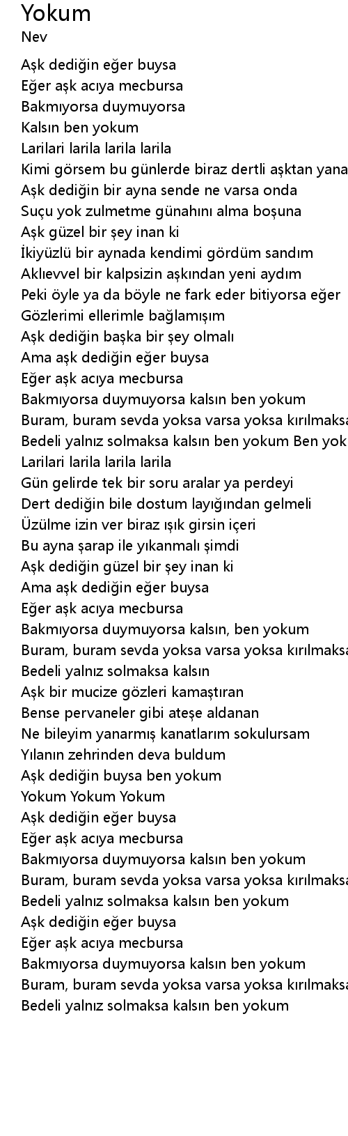 | Aşk dediğin buysa ben yokum | |