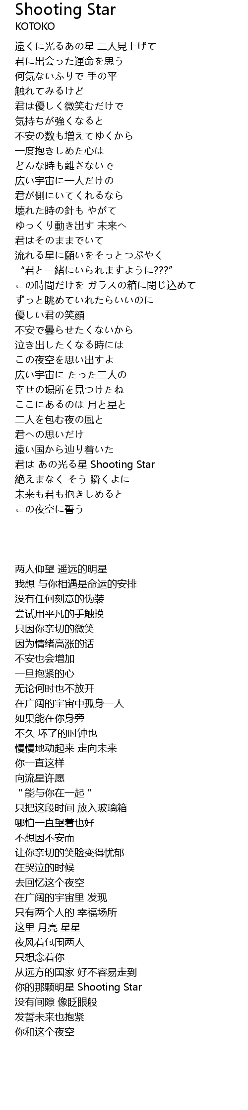 | [03:51.990] | 君は あの光る星 Shooting Star |