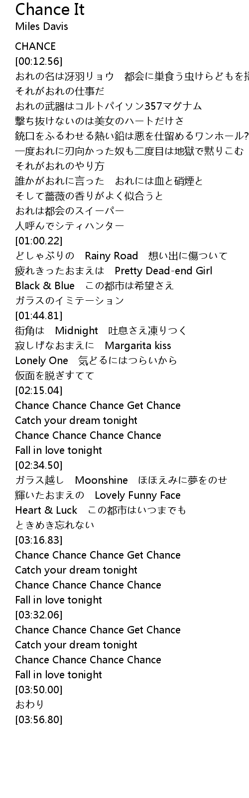 | [03:34.21] | Chance Chance Chance Get Chance |