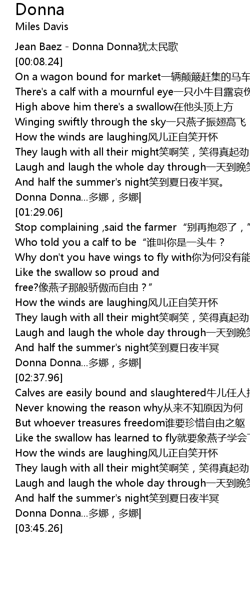| [03:19.26] | Donna Donna... duo na, duo na |