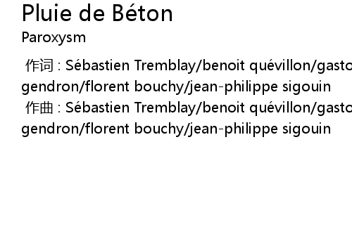 | [00:00.000] | 作词 : Sébastien Tremblay/benoit quévillon/gaston gendron/florent bouchy/jean-philippe sigouin |