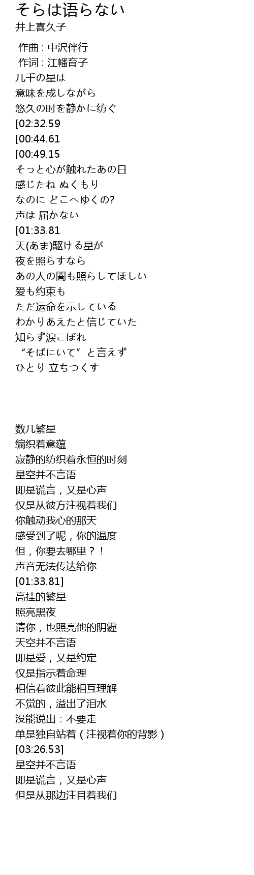 | [03:40.81][02:32.59][00:40.19] | そらは语らない |