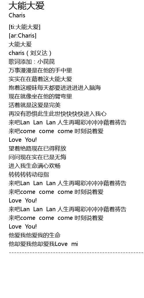 | [02:37.58] | 来吧Lan Lan Lan 人生再喝彩冲冲冲藉着祷告 |