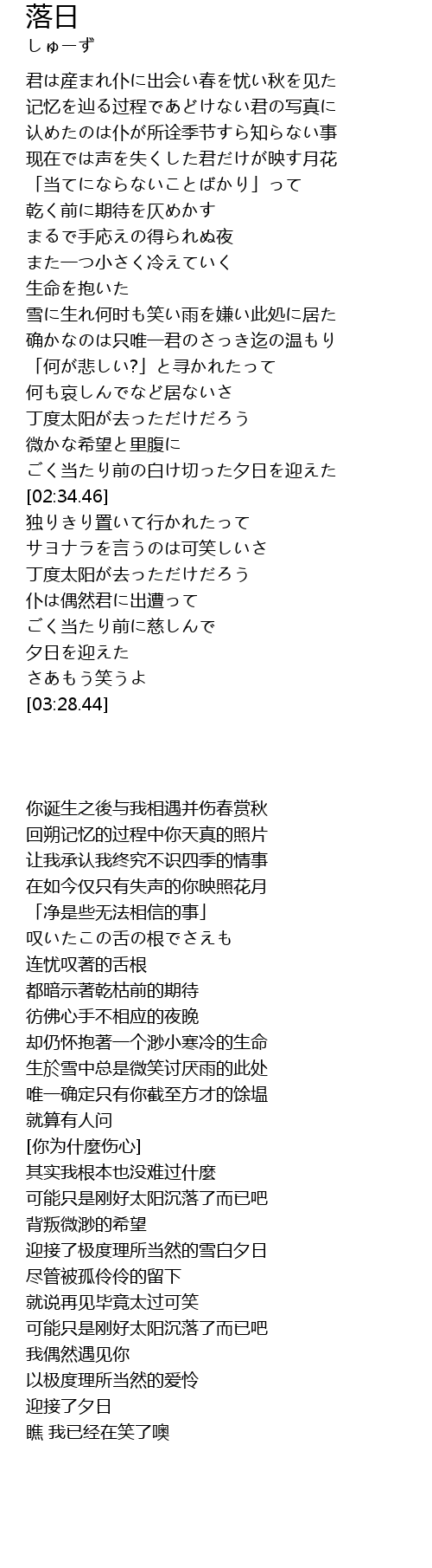 | [02:59.19] | 可能只是刚好太阳沉落了而已吧 |