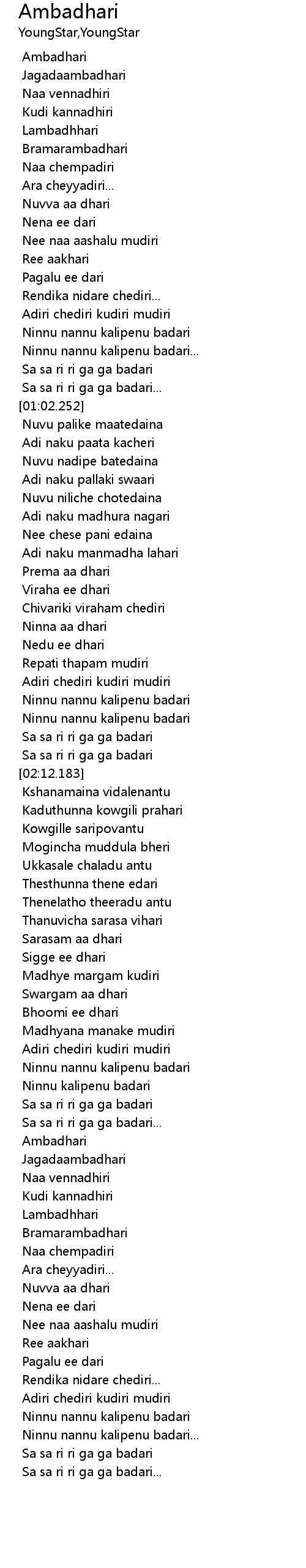 | [00:55.179] | Ninnu nannu kalipenu badari... |