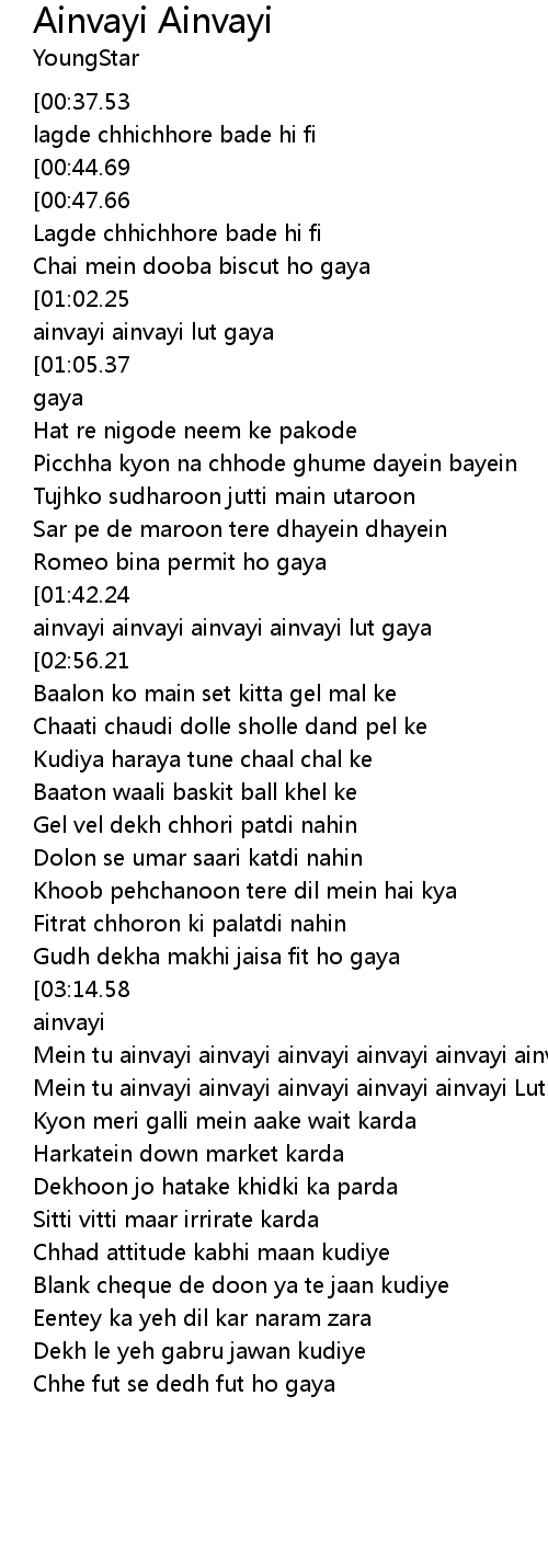 Ohh mein tu ainvayi ainvayi ainvayi ainvayi ainvayi ainvayi ainvayi |