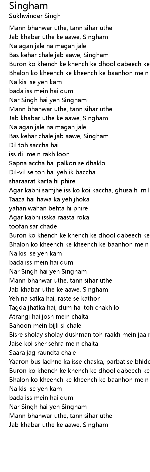 Jab khabar uthe ke aawe, Singham |
