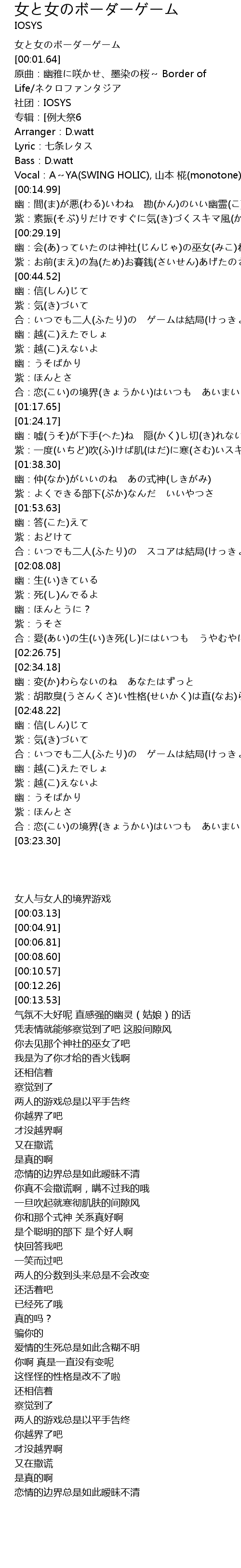 | [00:03.13] | 原曲:幽雅に咲かせ、墨染の桜~ Border of Life/ネクロファンタジア |