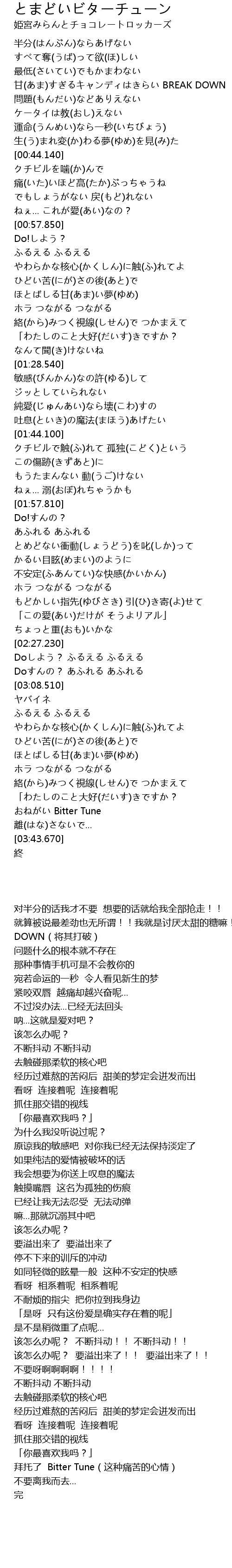 | [03:35.080] | 拜托了 Bitter Tune(这种痛苦的心情) |