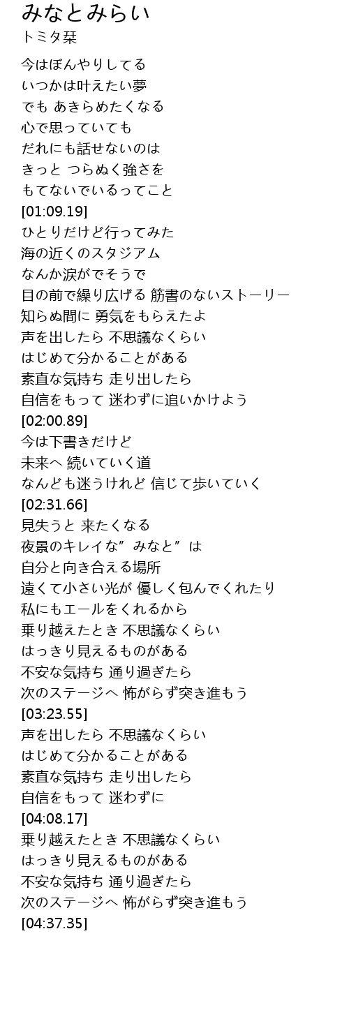 | [04:26.70] | 次のステージへ 怖がらず突き進もう |