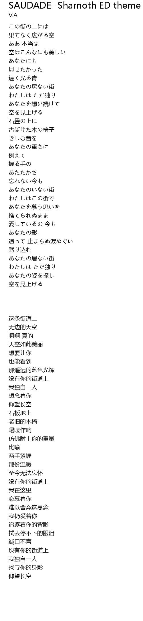 | 歌曲 | SAUDADE -Sharnoth ED theme- |