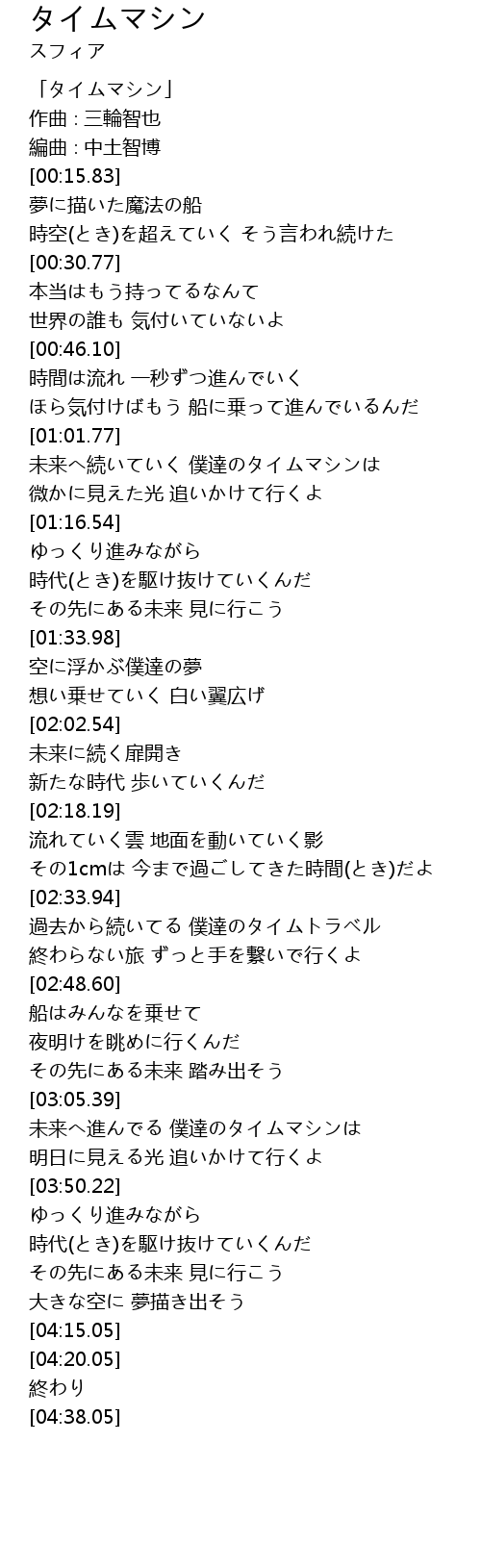 | [00:00.83] | 「タイムマシン」 |