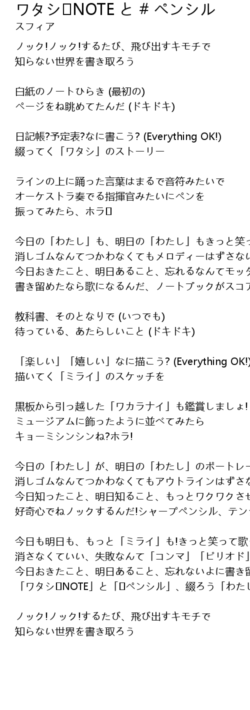 | 歌曲 | ワタシ♪NOTE と # ペンシル |