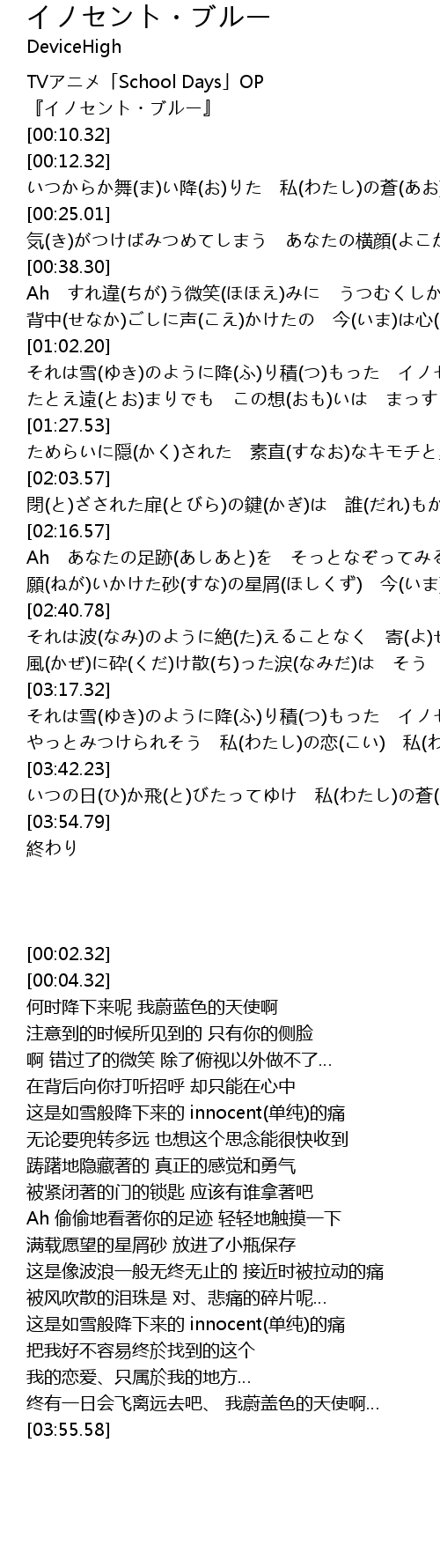 | [00:02.32] | TVアニメ「School Days」OP |