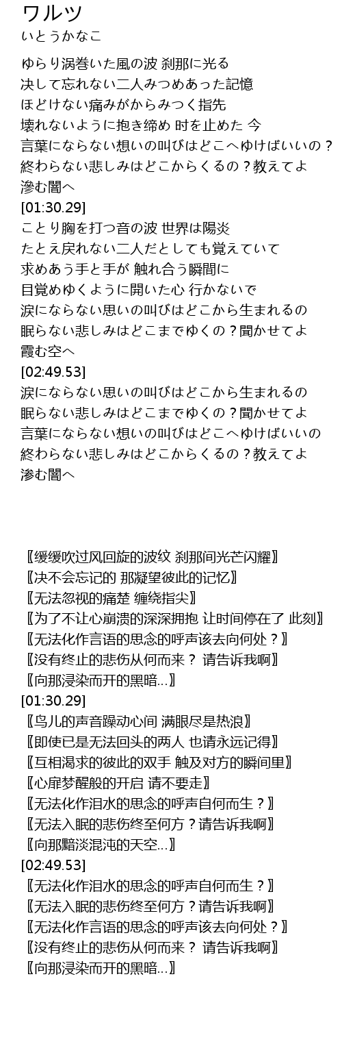 | [03:23.37] | 〖无法化作泪水的思念的呼声自何而生?〗 |