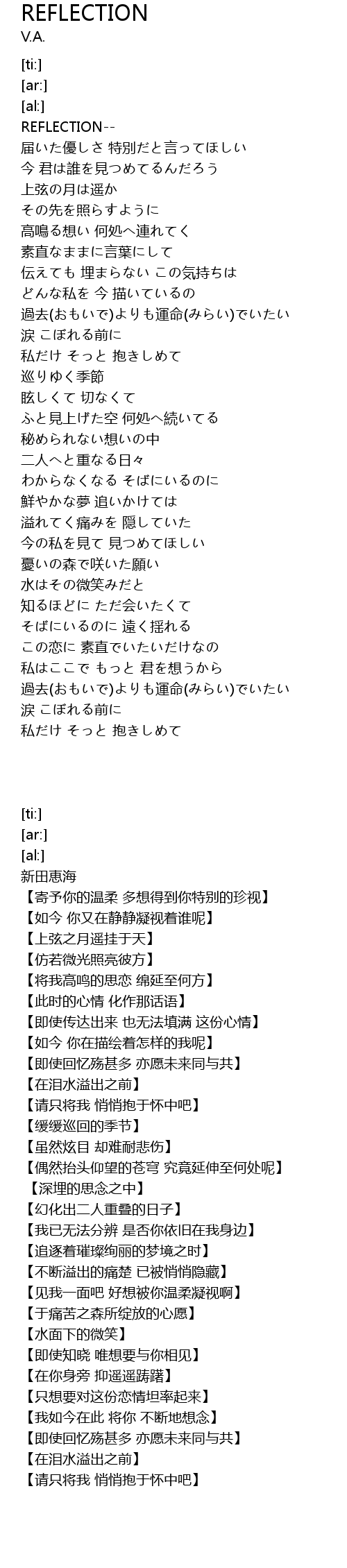 | 歌曲 | REFLECTION |