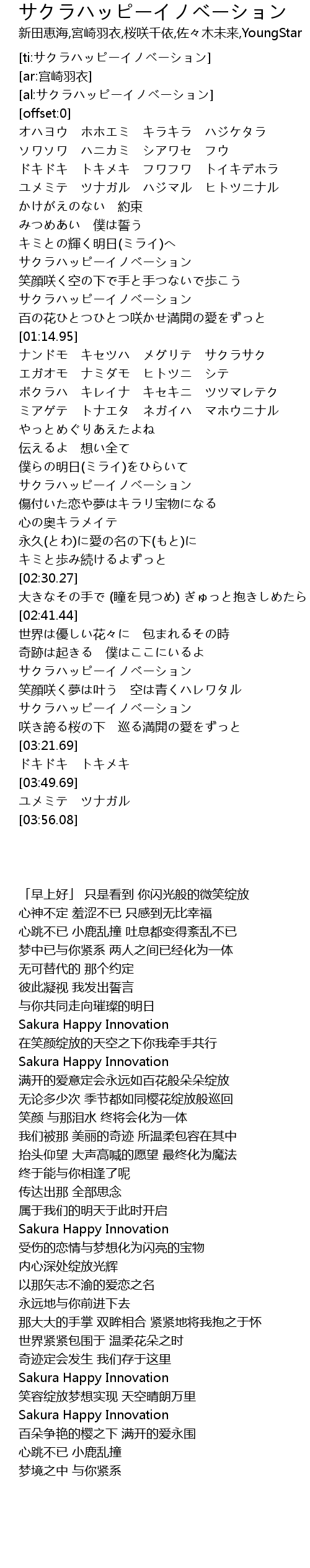 | [03:13.58] | 咲き誇る桜の下 巡る満開の愛をずっと |