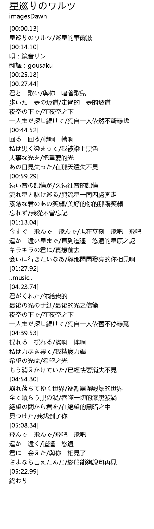 | [00:00.90] | 星巡りのワルツ/巡星的華爾滋 |