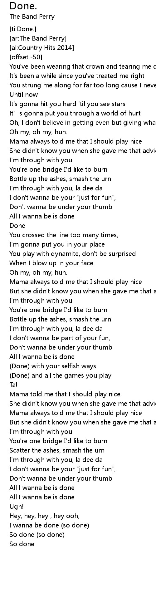 | [03:10.20] | I wanna be done (so done) |