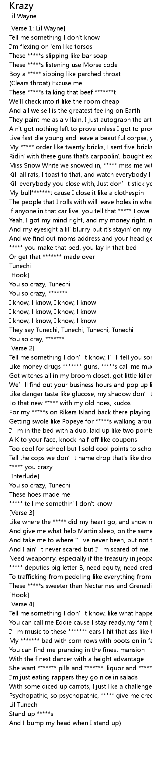 | You so crazy, | |