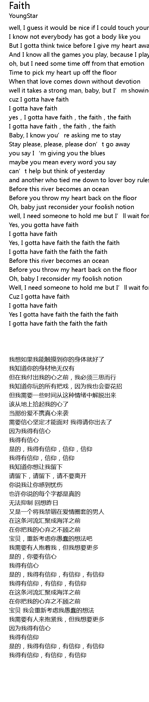 | [00:49.984] | yes,I gotta have faith,the faith,the faith |