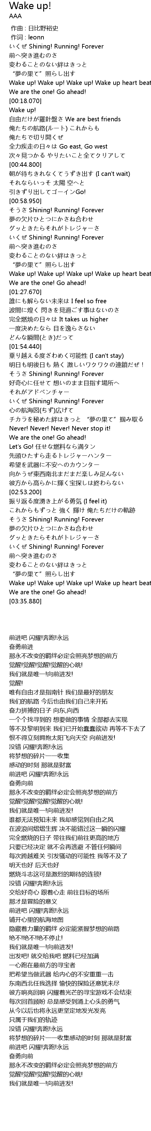 | [00:12.590] | Wake up! Wake up! Wake up! Wake up heart beat! |